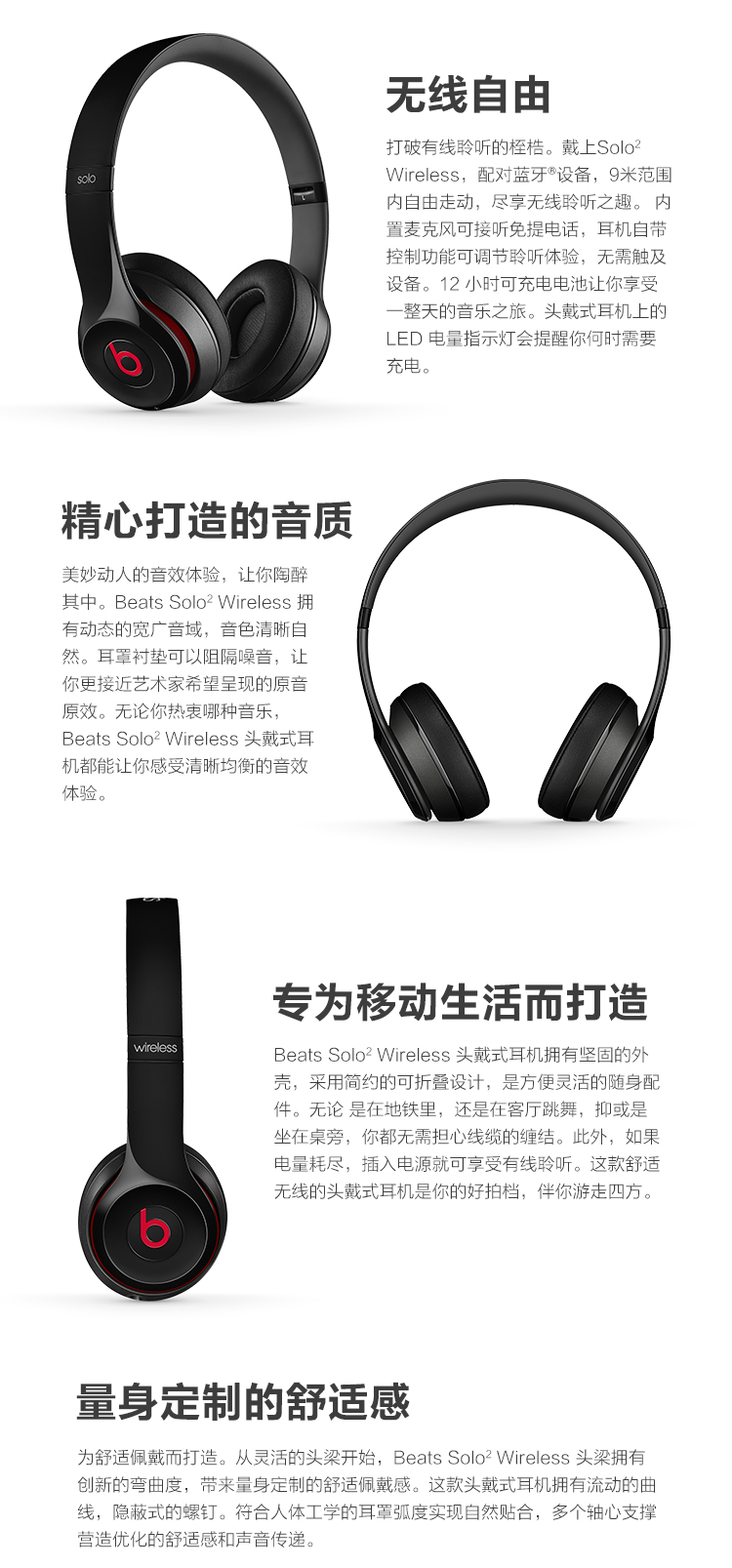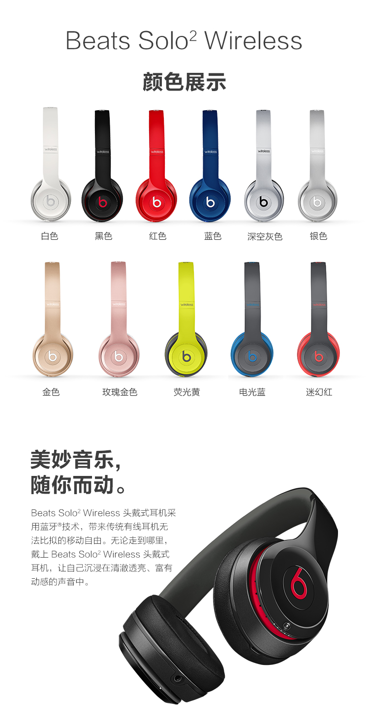 Beats Solo2 Wireless 头戴式耳机 - 红色 蓝牙无线 带麦 MHNJ2PA/A