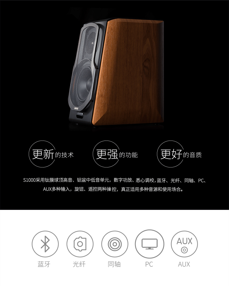 漫步者(EDIFIER)S1000 划时代新经典 HIFI有源2.0音箱 蓝牙音箱 音响