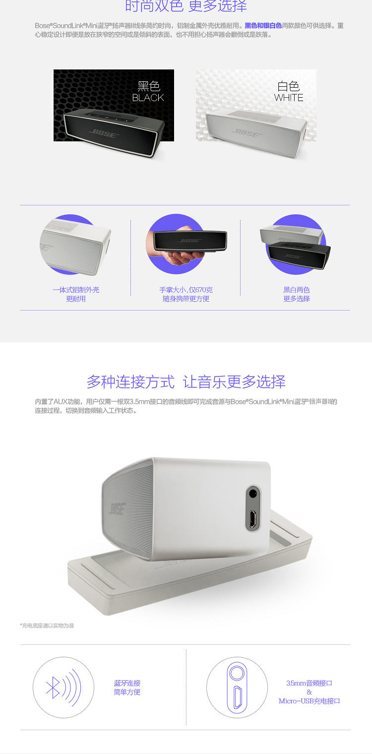 Bose SoundLink Mini蓝牙扬声器II-银白色 无线音箱/音响